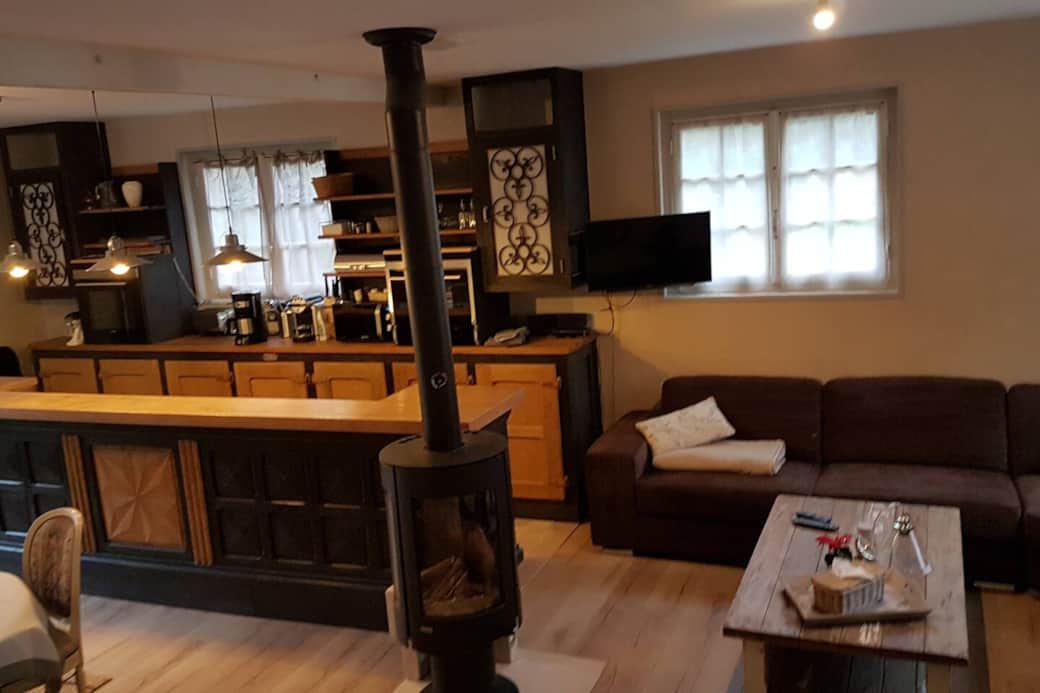 Un écrin de verdure, les pieds dans l'eau, le gîte Nid dans la forêt vous apportera calme et moments inoubliables. Avec son étang poissonneux il est idéale pour les pêcheurs recherchant un lieu en pleine forêt. La prairie face à la terrasse devant la salle à manger offre aux cavaliers de surveiller au chaud les chevaux. Prenez un repas sur la grande table de la salle ou un apéritif dans le salon à coté du poêle à bois.